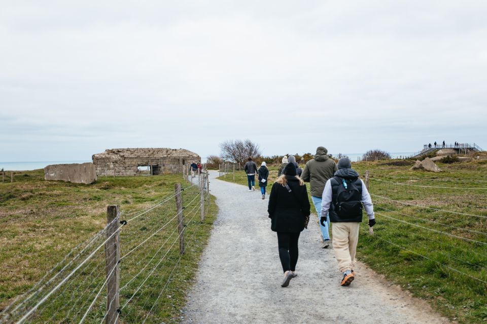 زيارة عاطفية لمقبرة نورماندي الأمريكية. - بوينت دو هوك:موقع استراتيجي احتلته أمريكان رينجرز مع المخابئ المحفوظة.